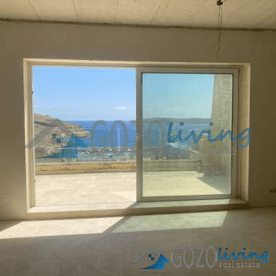 A spacious and delightful Apartment is being offered for sale in Mgarr, Gozo. This unique property close to the harbour has a breath taking sea view of Comino and the island of Malta. Layout offers a spacious kitchen, dining, living room combined, leading onto a large terrace with exceptional views, 4 bedrooms (two ensuite) and bathroom. This Apartment is being sold semi finished including installation of electrical service, marble tiles flooring and double glazed. Common parts are included in the price and optional garages are available for additional price.