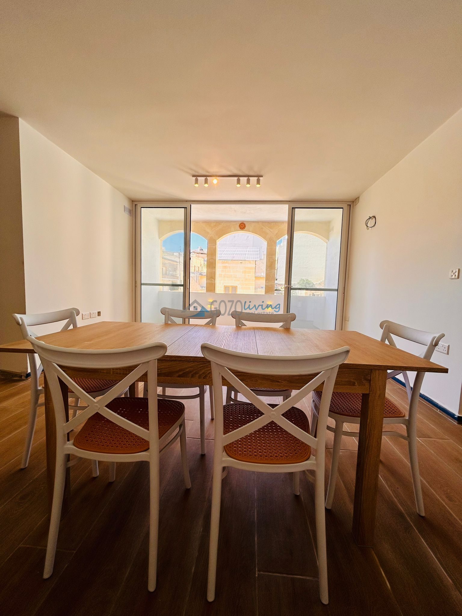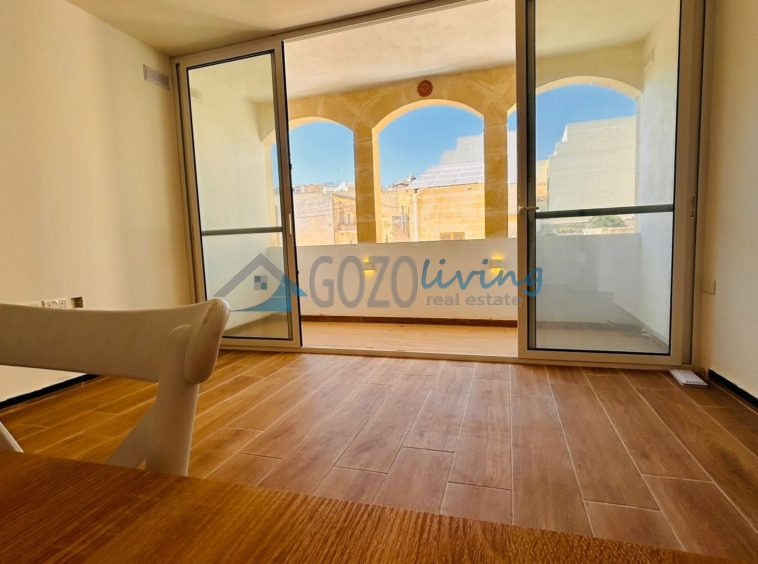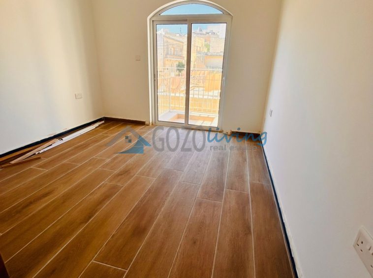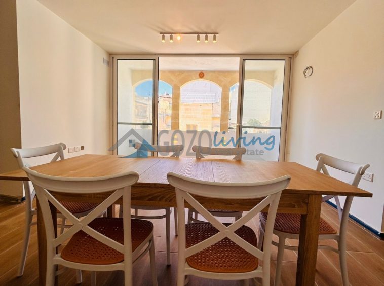 Brand new Apartment situated in a central area of Qala. Property enjoys a squarish layout and offers an open plan kitchen, dining and living room combined, three bedrooms, en suite and bathroom. It is being sold finished with a kitchen and dining table and chairs. It is still in need of the internal doors. A one car garage is available at additional.