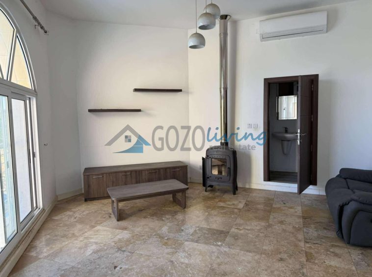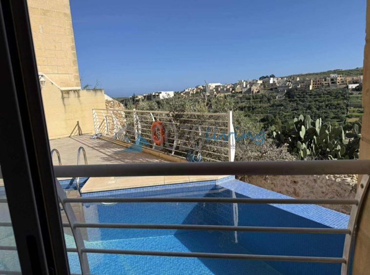A cozy living room with a wood-burning stove, a bathroom and a combined kitchen and dining area create a warm and welcoming living space. All main areas open directly onto the pool and deck area, where you can enjoy uninterrupted views of the beautiful, lush valley below.