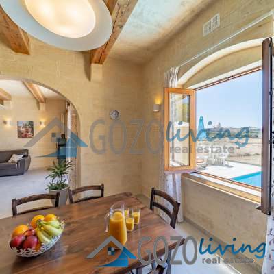 Charming converted Farmhouse full of traditional features being available for Rent and located on the outskirts of the tranquil village of Gharb. Property comprises of a welcoming and cosy entrance, leading to a spacious living room & fireplace, a separate modern kitchen and dining combined and all lead to a large size swimming pool with large deck and BBQ area. An original wide staircase, leads to the first floor having a main bedroom with ensuite shower, walk in wardrobe and balcony overlooking the pool and another two bedrooms and a main bathroom.